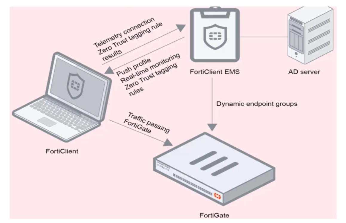 (Cisco ISE · FortiAuthenticator · FortiMail · FortiClent EMS · 3CX IP Phone · FortiGate)